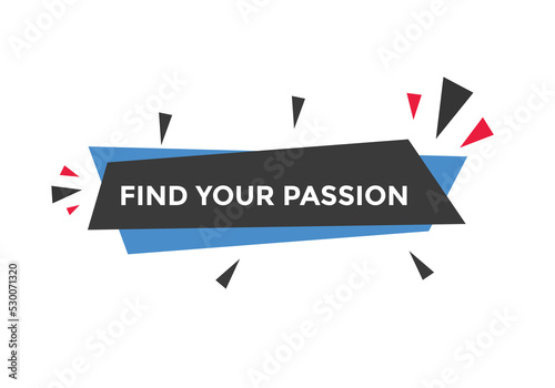 Find your passion button. Find your passion sign speech bubble. Web banner label template. Vector Illustration