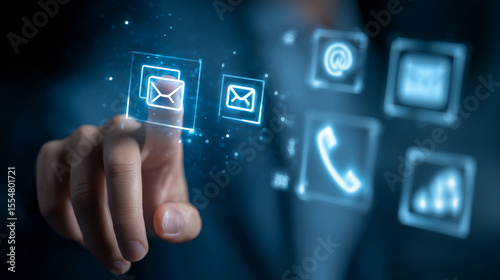 finger, pressing, electronic mail, icon, interface, technology, virtual, contact, communication, touch, network, futuristic, digital, blue, graphic, concept, media, social, connectivity, cyberspace, connection, application, software, device, click, user, illustration, service, online, networking, system, information, menu, shortcut, electronic, access, gesture, pointing, tap, interaction