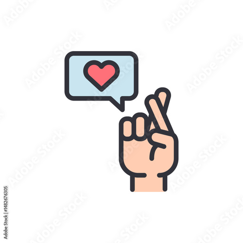Fingers Crossed With Heart In Speech Bubble Illustration Style