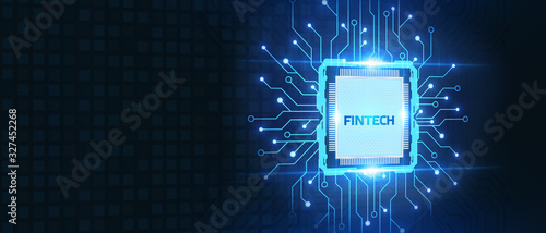 Fintech -financial technology concept.Young businessman select the icon Fintech on the virtual display.
