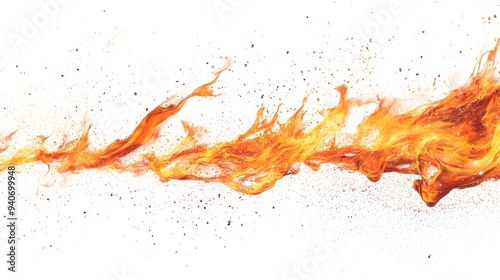 Fire Burst: A burst of flame, with tongues of fire reaching out in all directions, sharply contrasted against a white background.