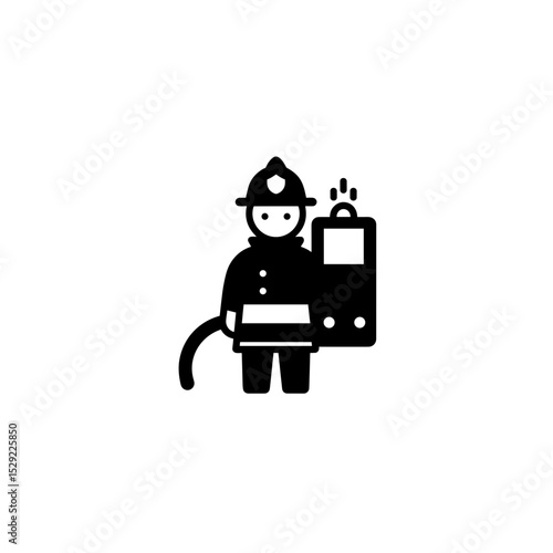 Firefighter holding a fire safety icon with equipment in black silhouette