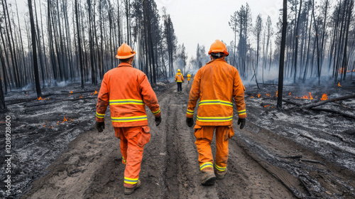 firefighter, forest, rescue, smoke, emergency, impact, recovery, effort, mission, solution, teamwork, risk, management, uniform, strategy, support, community, challenge, team, heat, duty, training, safety, awareness, protection, action, prevention, response, destruction, survival, danger, tactic, terrain, ash, devastation, orange, equipment, nature, environment, landscape
