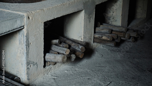 Firewood Stacked in Antique Kitchen for Traditional Cooking