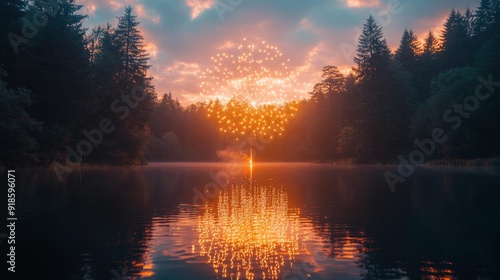 fireworks, lake, serene, forest, dusk, stunning, display, nature, water, tree, evening, glow, celebration, vibrant, night, sky, beauty, light, peaceful, scenic, landscape, event, festive, sparkle, explosion, calm, mirror, calmness, spectacle, fireworks, summer, colourful, bright, illumination, horizon, wooded, show, environment, aesthetic, twilight, symmetry, visual, gloaming, sunset, sun, sunrise, river