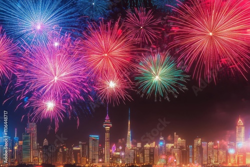 fireworks, explode, silhouette, city, skyline, new, year, design, top, style, nocturnal, culture, festive, charme, holiday, winter, explosion, fantasy, monochromatic, event, ambience, atmospheric, science fiction, aesthetic, night time, inspiration, colours, graphic, magical, display, celebration, creativity, tradition, midnight, urban, decoration, imagery, visual, party
