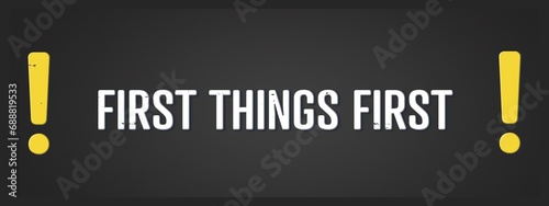 First things first. A blackboard with white text. Illustration with grunge text style.