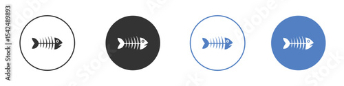 Fish bones icon collection for app in black and blue colors