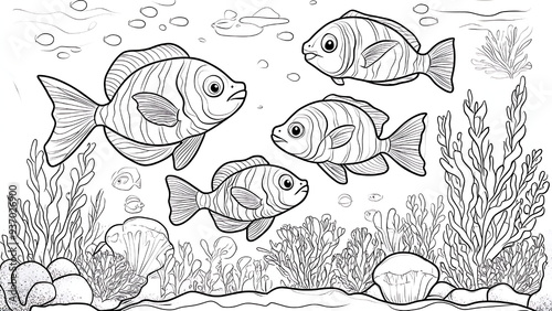 fish outline contour drawing illustration for coloring book page