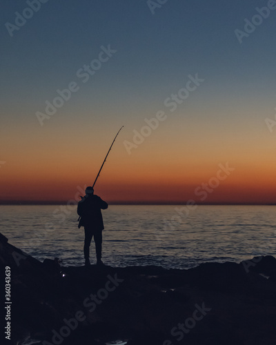 fishing, fisherman, sunset, sea, silhouette, beach, water, rod, ocean, fish, sunrise, angler, sun, sky, dusk, nature, leisure, sport, evening, lake, hobby, summer, people, angling, sand