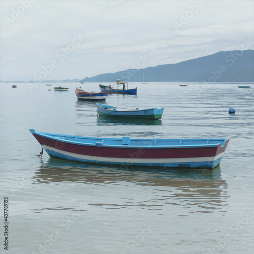 Fishing boats at the bay of Bombinhas, Santa Catarina, Brazil