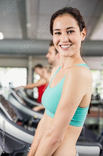 Fit woman running on treadmill