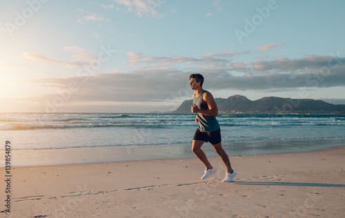Fit young man jogging on the beach