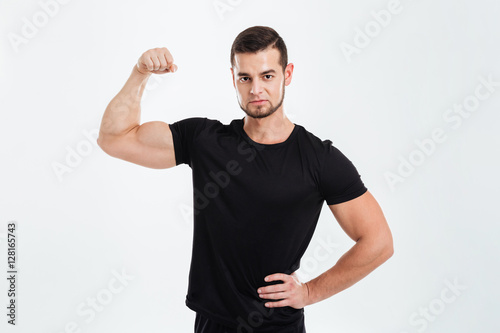 arm, athlete, away, background, bodybuilder, confident, copy, determination, ethnicity, exercising, fit, fitness, flexing, photogenic, healthy, human, isolated, lifestyle, limb, looking, macho, male, man, model, muscle, muscular, 1, people, person, portrait, space, sport, sportsman, activewear, standing, strength, strong, studio, tough, training, up, waist, young