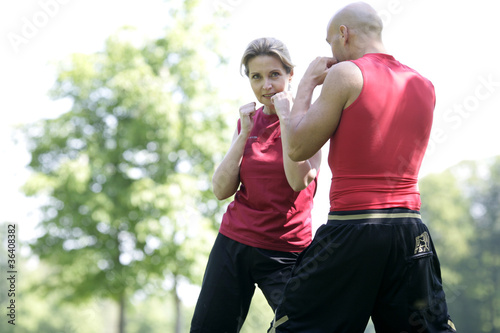man, woman, park, break, silly, happy, enamoured, love, attractive, strong, athletic, muscle, fitness, persistence, training, healthy, health, fit, take off, spring, garden, green, blue, white, train, tracksuit, laugh, fun, fun, vigorous, vitality, enjoyment, physical exercise, nature, power, free, trainer, sport, young, aged, couple, couple, box, boxer, red