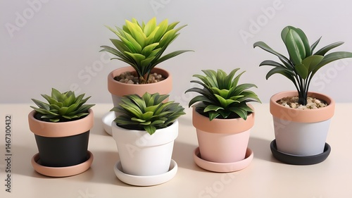 Five Artificial Succulents in Pastel Pots Home Decor Plants