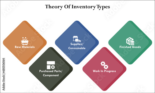 Five aspects of Theory of Inventory Types. Infographic template with icons