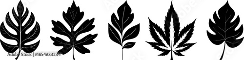 Five Black Leaf Silhouettes: Nature, Botany, Design
