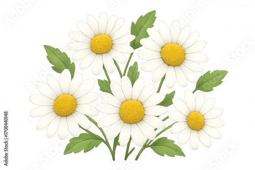 Five cheerful daisies forming a bouquet on a transparent background, perfect for adding a touch of nature to any design