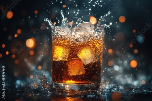 Fizzy Cola Drink with Ice Falling and Splash Effect