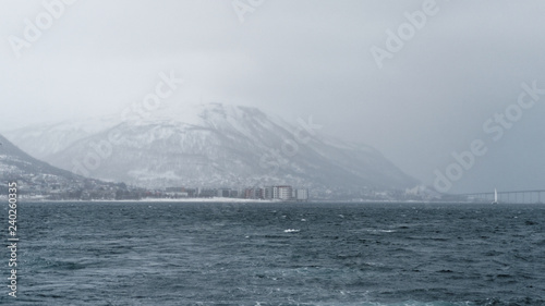 fog, fiord, sea, water, ocean, heaven, boat, cloud, landscape, nature, travel, mountain, lake, summer, horizon, transport, view, coast, mist, vacation, river, yacht