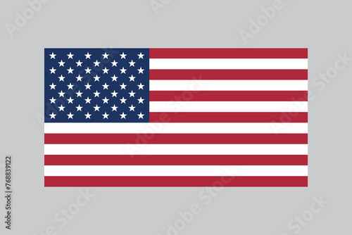 Flag of USA, american flag in 10:19 proportion, vector illustration with a grey background