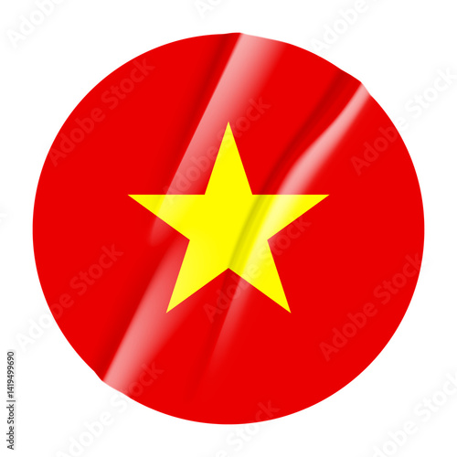 Flag of Vietnam flag round sticker. 3d illustration wrinkled flag sticker patch transparation png