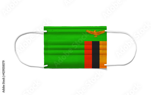 flag, zambia, mask, virus, isolated, white, protection, medicals, disease, flu, health, pandemic, quarantine, epidemic, corona, medicine, infection, face, safety, prevention, flu, disease, protect, protective, outbreak, disposable, surgical, face mask, concept, country, nation, background, isolated on white, colours