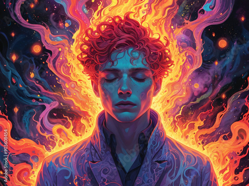 Flamey Psychedelic Portrait Art of a Calm Man With His Eyes Closed