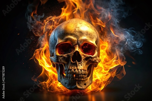 skull, burning, flames, fire, design element, graphic design, digital artwork, clip art, illustration, background, texture, image, photo, hi-res, isolated, realistic, ember, smoke, intense, hot, heat, artistic, visual