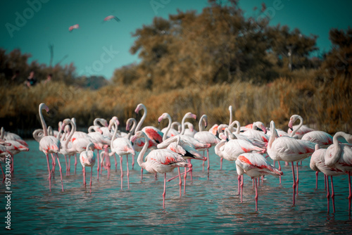 flamingo, bird, pink, animal, nature, zoo, wildlife, water, beak, game, red, feather, exotic, see, tropical, vogel, zoo, camargue, france, feather, pink, plumage, pretty, love, group, fauna, group, fly