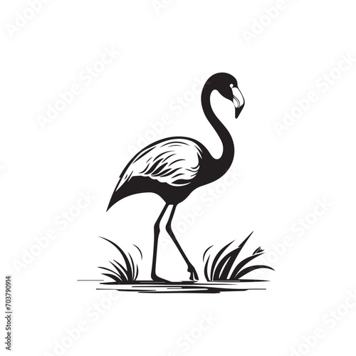 Flamingo in cartoon, doodle style. Isolated 2d vector illustration in logo, icon, sketch style, Eps 10, black and white. AI Generative