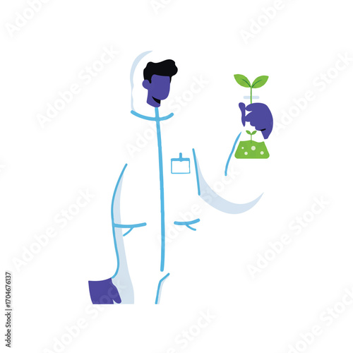Flat 2D vector illustration of a person holding a plant on World Science Day for Peace and Development with a green sprout, symbolizing growth and harmony.