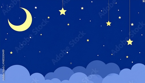 flat art blue sky at the night illustration with space for your text