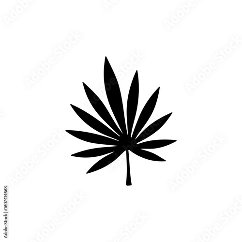 Flat black tropical leaf silhouette. Isolated jungle foliage on a white background. Ideal for botanical designs, logos, decorations, eco-friendly products, and nature projects.