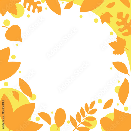 Flat Design Autumn Leafy Frame in Orange and Yellow Silhouette Style, with Various Leaves Surrounding a Transparent Center. Perfect for Seasonal Designs. Square Shape.