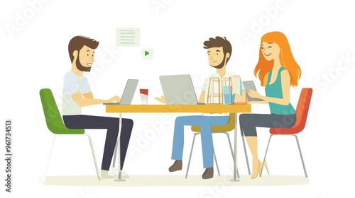 Flat Design Illustration of Colleagues in a Work Discussion on Clean White Background