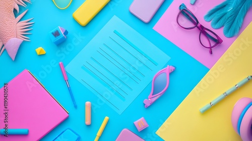 paper, note, background, colourful, stationery, accessory, phone, goggles, pen, marker, crayons, notebook, notepad, pastel, pink, blue, yellow, purple, turquoise, teal, cyan, design, texture, object, item, school, office, work, study, style, creative, fun, bright, vibrant, summer, spring, children, children, teenage, girl, woman, lifestyle, technology, fashion, modern
