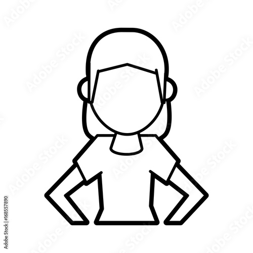 Flat line uncolored woman avatar over white background vector illustration