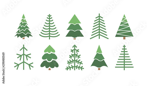Flat set of Christmas trees. Holidays background. Abstract line art drawing woods. Vector Holidays illustration