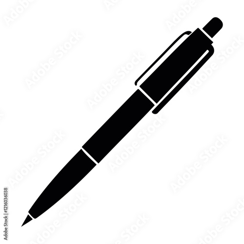 Flat Vector Black Silhouette of a Pen Isolated on Transparent Background