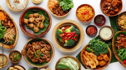 Flavorful Array of Indonesian Cuisine on White Background in High Definition 8K Quality