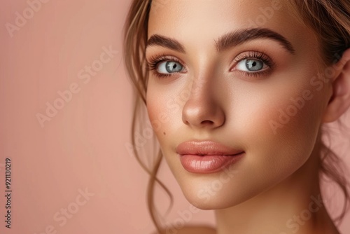 Flawless Complexion of a Young Woman with Striking Blue Eyes