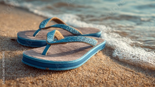 Flip-flops at ocean water's edge