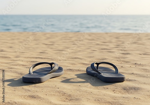 beach, flip-flop, sandal, footwear, summer, vacation, holiday, travel, ocean, sea, sand, coastline, relaxation, leisure, tropical, sunny, blue, grey, outdoors, closeup, lifestyle, warm, carefree, peaceful, calmness, tour tourism, destination, resort, coastal, beachwear, sun, water, horizon, empty, nobody, minimalism, copy space, background, texture
