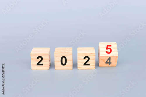 Flipping of 2024 to 2025 on wooden block cube for preparation new year change and start new business target strategy concept.