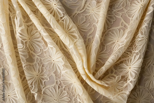 Floating 3D Cream Lace Fabric with Intricate Drapery Against a Neutral Background
