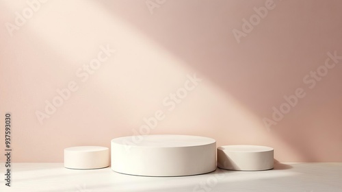 Floating 3D podium with gentle shadows and neutral colors, elegant design, minimalist focus