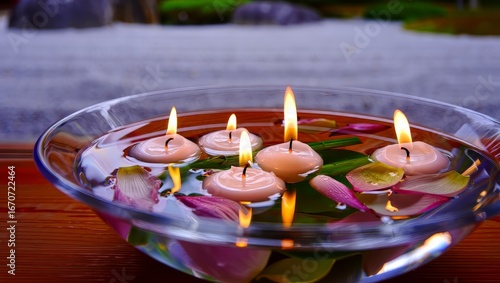 candle, bowl, water, flower, floating, spa, relaxation, meditation, peace, zen, wellness, therapy, aroma, fragrance, rose, leaf, garden, nature, still, life, arrangement, centrepiece, decoration, ornament, flames, light, glasses, clear