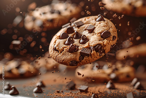 Floating Cookie Flying Chocolate chip cookies with pieces of Chocolate Chip Cookies